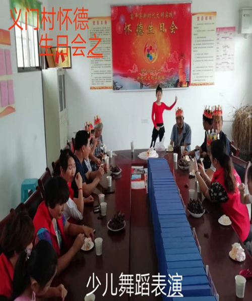 党倩 15877435804义门村村新时代文明实践成立于2018年11月。挂牌成立以来,深入开展宣传政策、传承孝道、讲文明、树新风、文艺文化等系列志愿活动。现在,全村有志愿服务者10余人,组织怀德生日会7次。为老人集体庆祝生日,庆祝元旦、三八节等文艺汇演,推出道德红黑榜,宣传思想文化和精神文明建设的持续发展。