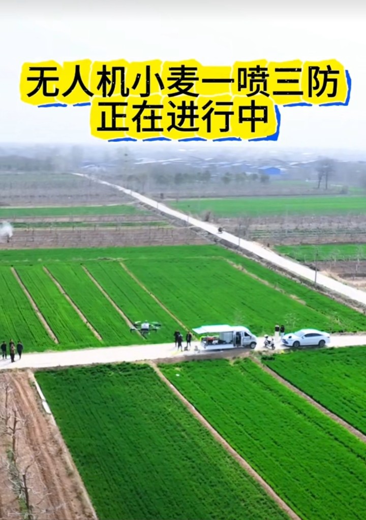 无人机为村民小麦“一喷三防”田间管理