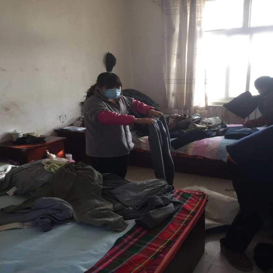 为特困供养老人打扫卫生,清理房间垃圾,整治院内环境