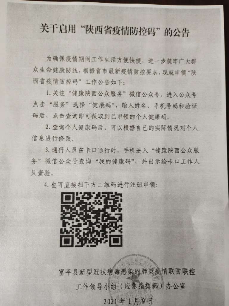 引导群众申领陕西疫情防控码,出行方便