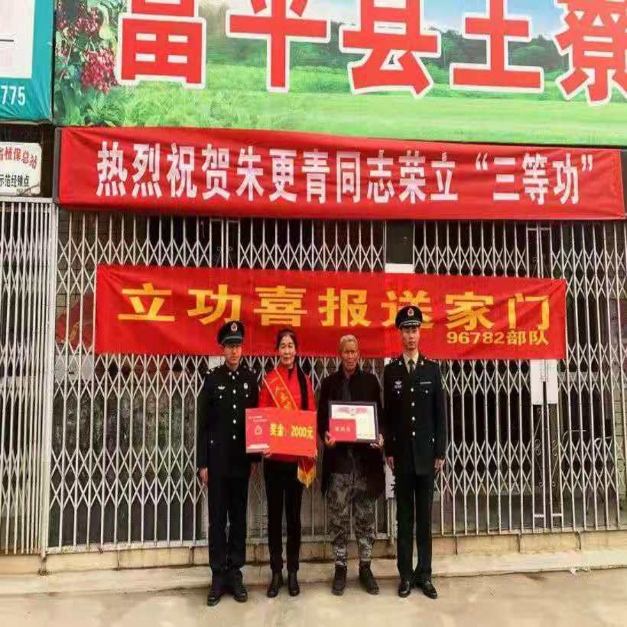 寒冷的冬天挡不住温暖的脚步,2019年12月25日,中国人民解放军96782部队代表在县人武部、县退役军人事务局、流曲镇武装部和镇退役军人服务站负责人的陪同下来到流曲镇王寮街道,为荣立个人三等功的现役军人朱更青父母送来了喜报和慰问金。